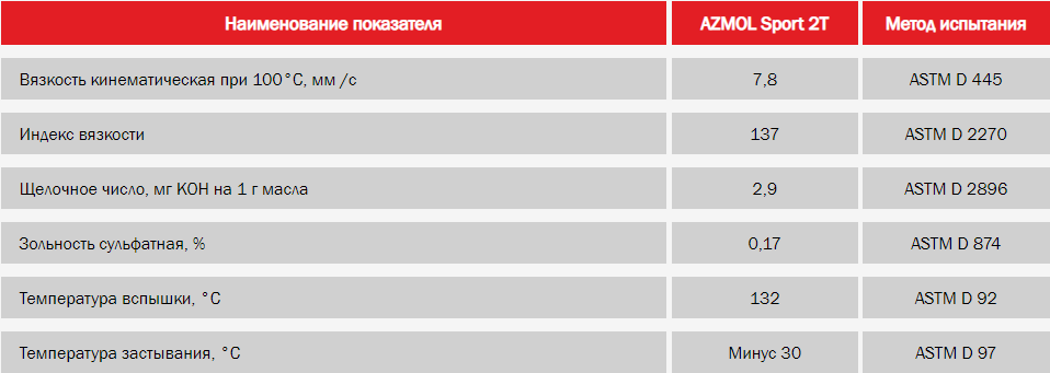 - минимальное содержание вредных веществ в выхлопных газах, за счет малодымной композиции масел и специальных беззольных присадок;