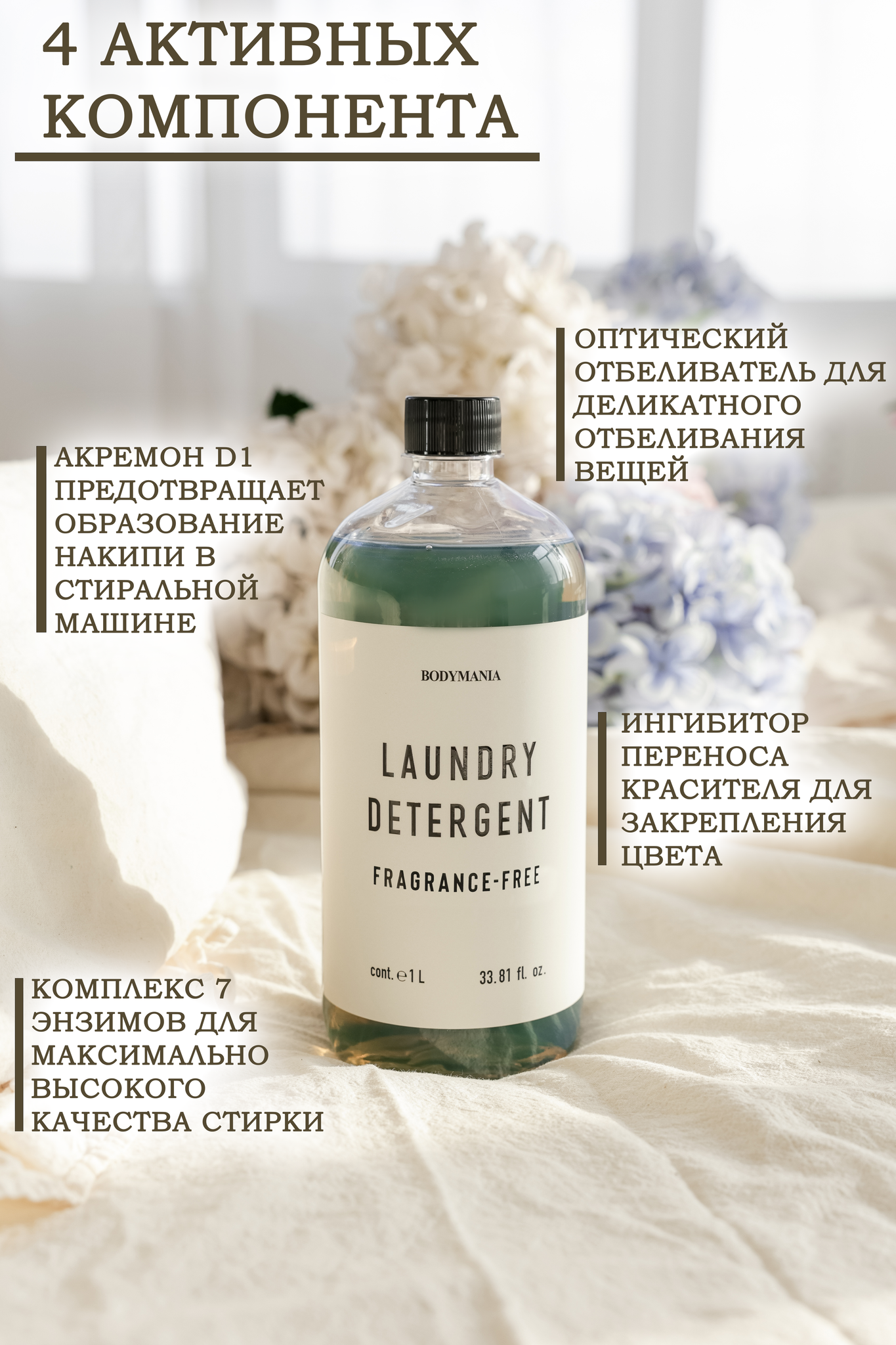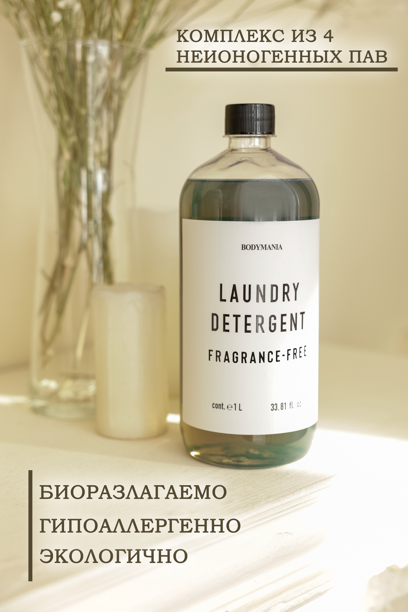 Гель для стирки деликатных вещей Fragrance-free 1л (Bodymania)